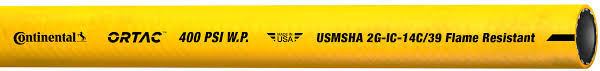 APLICACIÓN: Ortac (tubo y recubrimiento resistentes al aceite). Es nuestra manguera más popular de alta calidad de usos múltiples. Usada en aplicaciones de servicio industrial pesado, Ortac puede manejar aire, aceite, agua, queroseno y algunos químicos. No es conductiva, mínima resistencia eléctrica. No conductiva, mínima resistencia eléctrica superior a (1) mega ohm por pulgada en la longitud de manguera de 1000 Volts DC. Disponible para presiones de trabajos de 250, 300 y 400 PSI. Nota: Ortac 400 amarilla es aprobada por USMSHA.